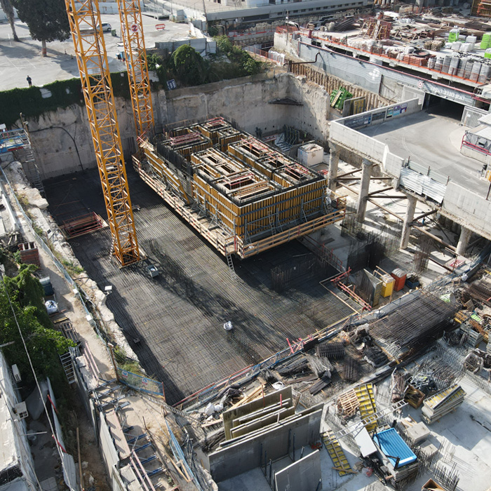 ארגון וסדר באתר בתחילת העבודה בשלב המרתפים ובלובי.