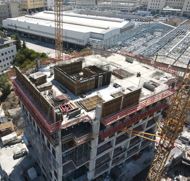 מגדל משרדים שהחל ביצוע מקומה 4 בגובה של 25 קומות.