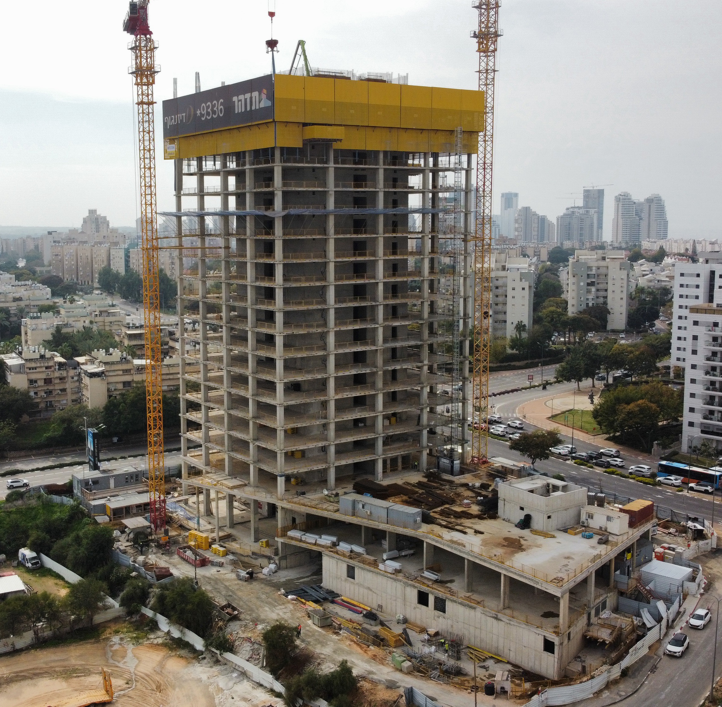בפרויקט מגדל רם בגובה 15 קומות טיפוסיות הוחלט שלא לטפס מראש עם הגרעין